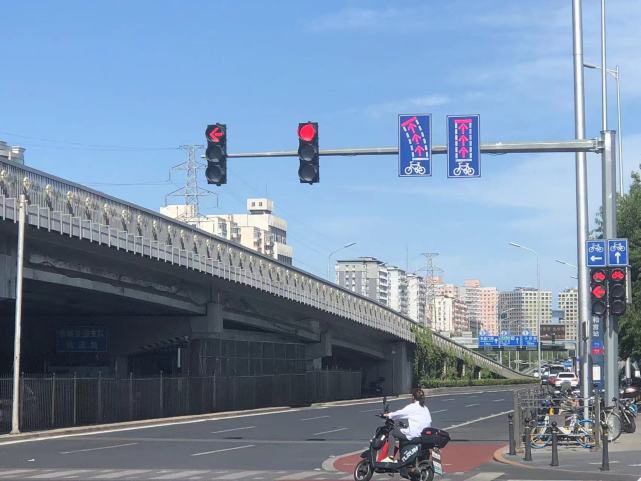 一次左转信号灯的调节,自行车可以和机动车一样,在桥下实现左转弯,不必再等