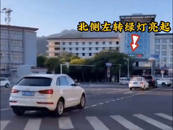 北侧左转绿灯亮起时 直行车辆进入直行待行区